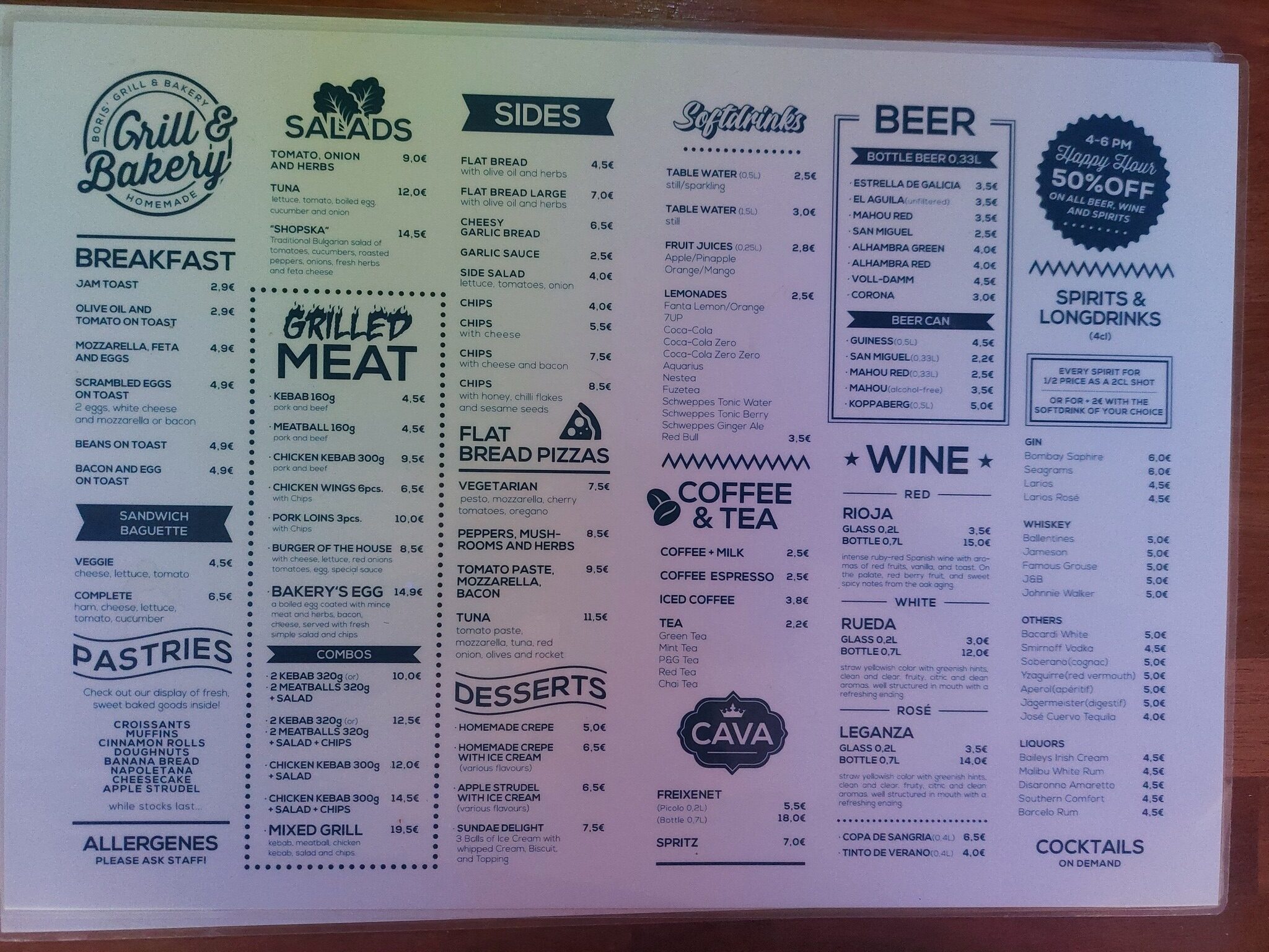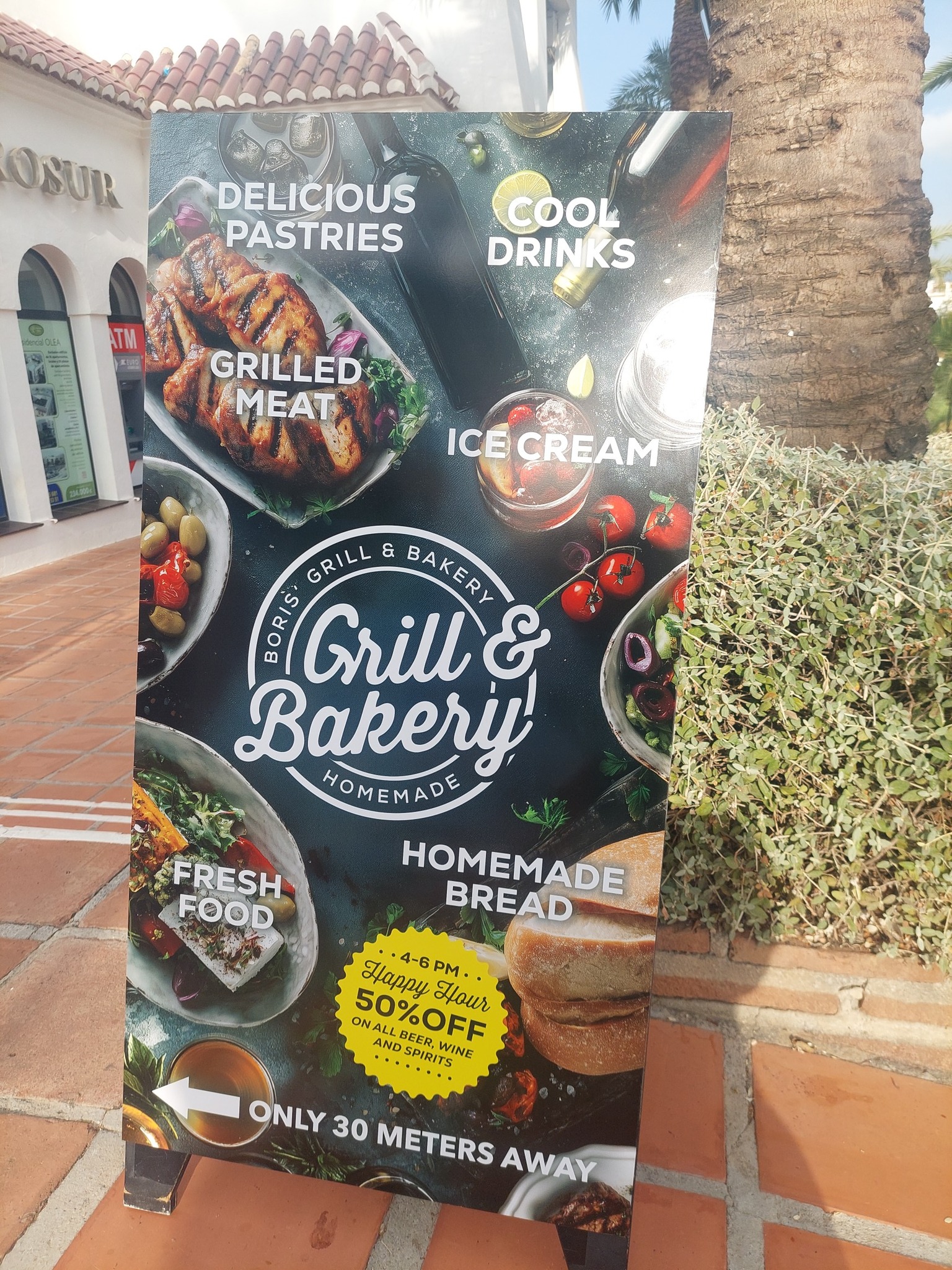 The Grill and Bakery is in San Juan de Capistrano in Nerja, below the communal pool and between the Rockys bar and KK’S.